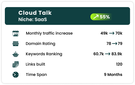 Our scalable link-building campaigns are designed for both agility and transparency, making them ideal for fast-growing SaaS businesses and startups. We also provide granular reporting and a focused approach on niche relevance, allowing you to track progress at every step.
